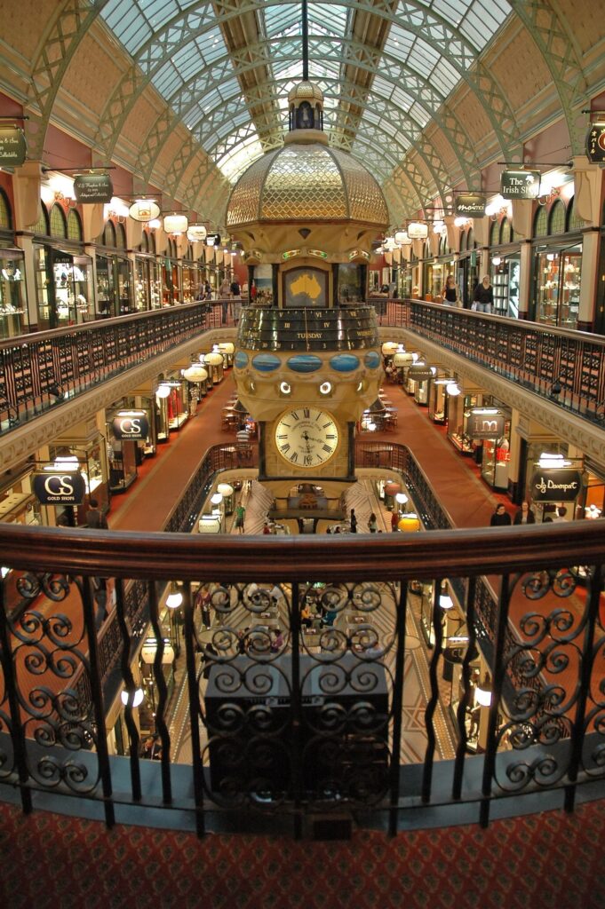 Step into the heart of Sydney’s shopping and architectural elegance at the Queen Victoria Building (QVB), a stunning 19th-century masterpiece filled with intricate stained glass, mosaic floors, and soaring domes. Once a grand marketplace, this beautifully restored building now houses boutique stores, elegant cafés, and unique Australian brands—all under one magnificent roof. Just outside, the bustling City Centre pulses with energy, from flagship department stores to vibrant street performers. Whether you’re shopping, sightseeing, or simply soaking up the grandeur, QVB and the surrounding city streets offer a rich blend of history, luxury, and modern-day buzz.